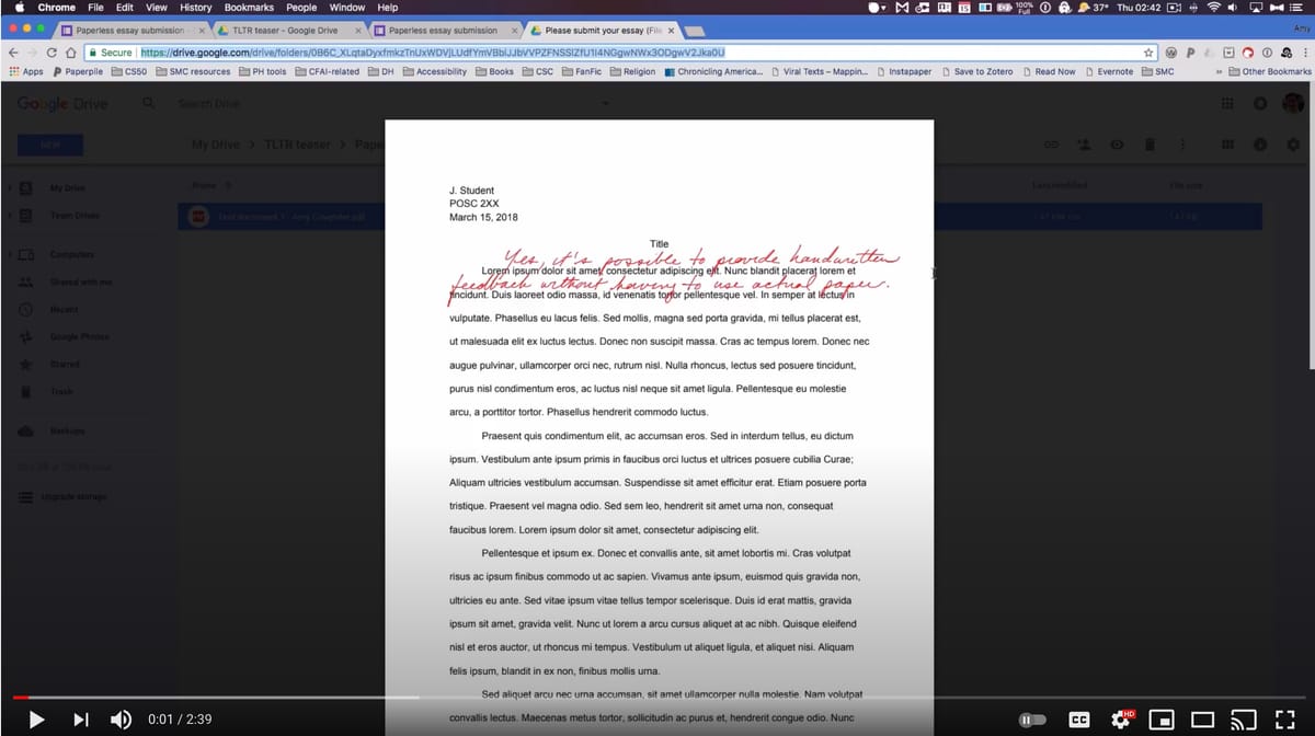 I’d like to demonstrate a way of providing handwritten feedback to students in a paperless environment.
